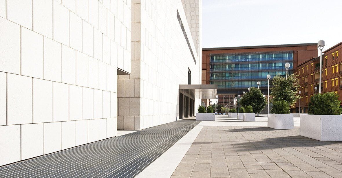 Jardinière modulaire de forme rectangulaire mod. « LONG » composée d’une jardinière monolithique, équipée de trous d’évacuation de l’eau dans la partie inférieure.